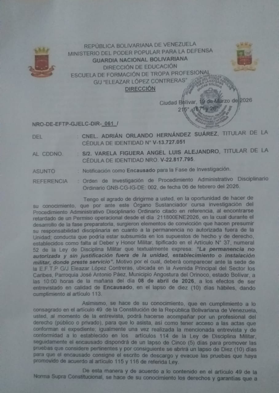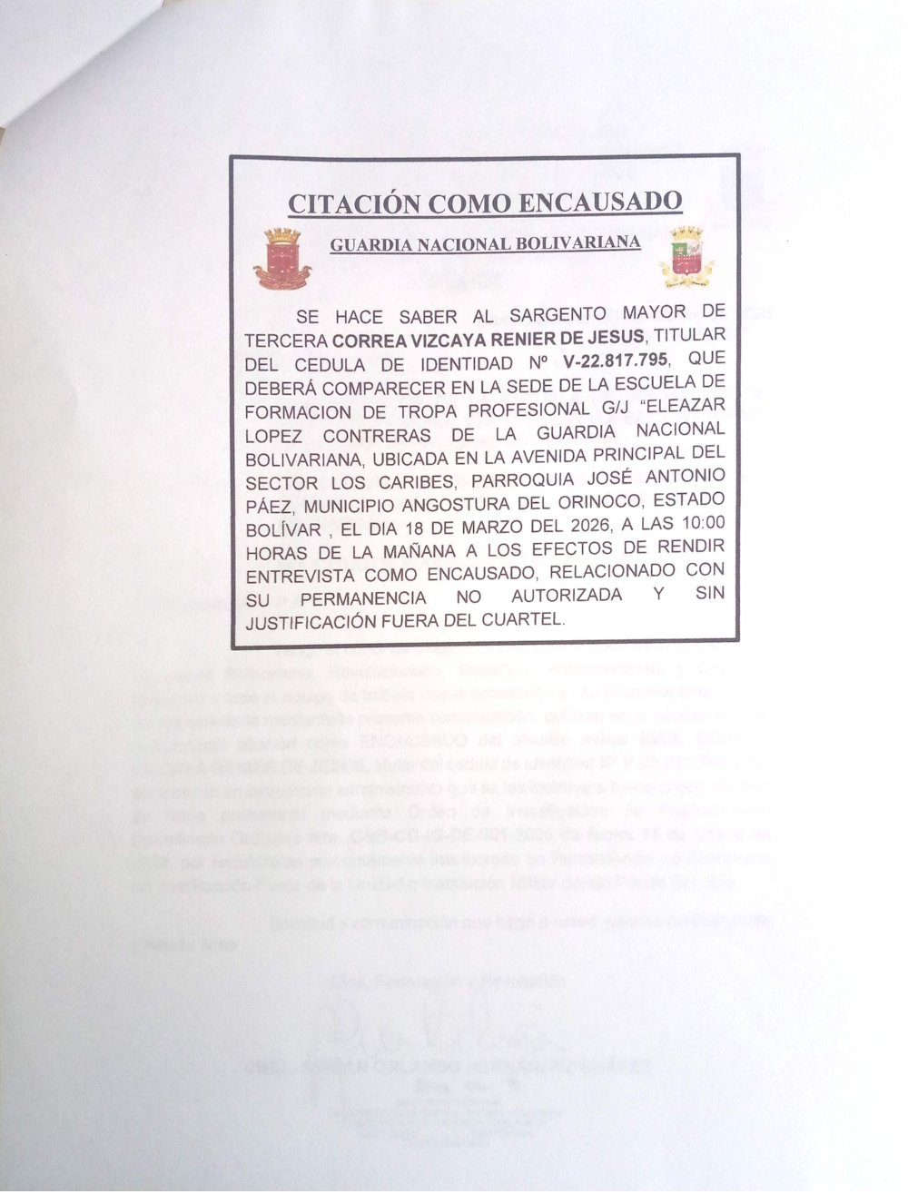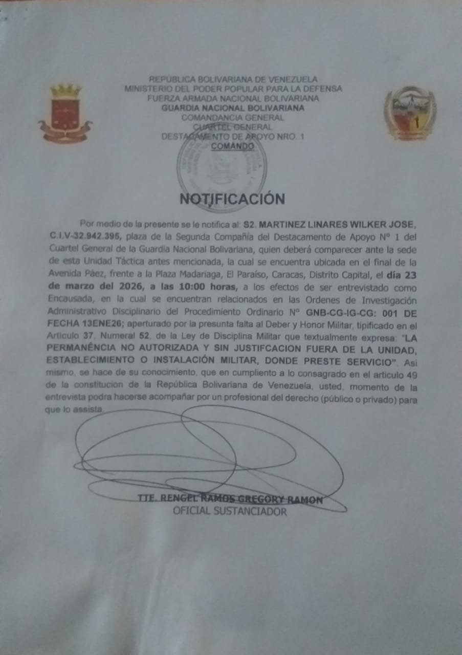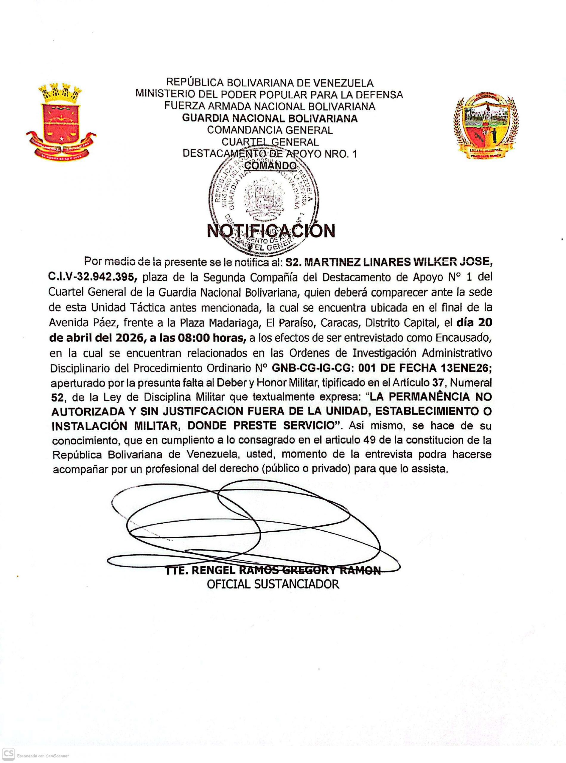Guardia Nacional Bolivariana Notificaciones sargento segundo martinez linares wilker jose SARGENTO SEGUNDO ANGEL LUIS ALEJANDRO VARELA FIGUERA sargento segundo wilker josé martÍnez linares primer teniente geoser ramón matos duque notificación sargento mayor de tercera correa vizcaya renier de jesus notificaciòn notificación notificación SARGENTO SEGUNDO ISMARY DEL VALLE MARTÍNEZ AVILES PRIMER TENIENTE ÁNGEL ABRAHAN MIGUENS MORALES SARGENTO SEGUNDO JOSMAN OSWALDO LEÓN BASTO NOTIFICACIÓN sargento primero gavidia parra endry jose sargento segundo montiel palomino hendry jose notificacion sargento primero thenn escalona daniela alexandra NOTIFICACIÓN SARGENTO MAYOR DE SEGUNDA GOMEZ PEREZ JONATHA ALEJANDRO SARGENTO MAYOR DE SEGUNDA JAIMEZ GONZALEZ EDISON CAPITAN RINCON MORILLO RAMON ANTONIO NOTIFICACIÓN NOTIFICACIÓN CAPITAN LUIS JAVIER ROJAS DAVID SARGENTO PRIMERO JOSÉ GREGORIO PATIÑO ALCALÁ NOTIFICACIÓN NOTIFICACIÓN SARGENTO MAYOR DE TERCERA TRIBIÑO SUAREZ JESUS ANGEL PRIMER TENIENTE OSCAR ALFREDO GIL SOLIS PRIMER TENIENTE JHOSEF EMANUEL GUTIÈRREZ MÈNDOZA PRIMER TENIENTE RUBEN ALONSO GÒMEZ PIÑEROS TENIENTE HÈCTOR LUIS MUÑOZ MENDOZA NOTIFICACIÓN NOTIFICACIÓN SARGENTO SEGUNDO ENDERSON JOSÉ VARGAS LUCENA TENIENTE RICHARD JOSÉ TIRADO PÉREZ TENIENTE JHEILY VANESSA CONTRERAS TROMPETERO NOTIFICACIÓN NOTIFICACIÓN PRIMER TENIENTE HEBER JUNIOR GIANITTI ESCALONA SARGENTO PRIMERO NEIBIS CHAVEZ CHOURIO SARGENTO SEGUNDO ANDRÉS ELOY BENTA GUTIÉRREZ PRIMER TENIENTE HEBER JUNIOR GIANITTI ESCALONA NOTIFICACIÓN NOTIFICACIÓN SARGENTO SEGUNDO JAMPIER ADONIS FLORES TORRES SARGENTO SEGUNDO LUIS ANTONIO HOYO BERBESI NOTIFICACIÓN CAPITÁN NELSI ROSSI LAMBOS SARGENTO MAYOR DE TERCERA KENDRIS JOSÉ VILLALOBOS FARIAS SARGENTO SEGUNDO DAVID SALOMÓN LÓPEZ VILLEGAS SARGENTO SEGUNDO RONAL JOSÉ LEAL GAMEZ SARGENTO SEGUNDO ABRAHAN JOSE SALAZAR FARIAS SARGENTO PRIMERO ANTHONY JOSÉ ALCALA DIAZ SARGENTO PRIMERO FELIANYER JOSÉ GARCIA MORILLO PRIMER TENIENTE MANUEL ALEJANDRO ESCALONA SILVA SARGENTO MAYOR DE PRIMERA NELSON ANTONIO HERNANDEZ CASADIEGO SARGENTO SEGUNDO KELVIN DANIEL HERRERA MONTOYA SARGENTO SEGUNDO JESÚS DAVID GARCÍA BARROSO SARGENTO SEGUNDO JEYKER MIGUEL MOLLEJAS GÓMEZ SARGENTO PRIMERO YEMBER SILVA ALBARRACIN SARGENTO SEGUNDO JULIANY PAOLA PALMAR PALMAR NOTIFICACIÓN NOTIFICACIÓN SARGENTO SEGUNDO CESAR ANTONIO MOTABAN CHANCHAMIRE SARGENTO SEGUNDO ÁNGEL ELOY AZOCAR MEZA SARGENTO PRIMERO ADAN ADOLFO LASCANO ÁLVARES SARGENTO SEGUNDO JOSÉ RAMÓN PÉREZ NATERA NOTIFICACIÓN NOTIFICACIÓN SARGENTO SEGUNDO JOSÉ RAMÓN PÉREZ NATERA TENIENTE JOSÉ MANUEL OSORIO RAMONES CAPITÁN JESÚS EDGARDO ROJAS GUTIERREZ NOTIFICACIÓN NOTIFICACIÓN CAPITÁN ROMER JESÚS RAMÍREZ CAMPOS NOTIFICACIÓN PRIMER TENIENTE DOMINGUEZ GRILLET JOSE MIGUEL SARGENTO PRIMERO MEDINA GONZALEZ ALEXANDER ANTONIO CORONEL CARLOS ALDRIN PERALTA PÉREZ SARGENTO MAYOR DE TERCERA WILLIAN JOSUE MANTILLA ARIAS SARGENTO PRIMERO HUMBERTO JOSÉ ROMERO PARRA TENIENTE HÉCTOR LUIS MUÑOZ MENDOZA PRIMER TENIENTE EDGAR JOSÉ GONZÁLEZ GONZÁLEZ PRIMER TENIENTE RUBEN ALONSO GOMEZ PIÑERO SARGENTO SEGUNDO ROSSTHY ANTONIO PÉREZ LAMEDA PRIMER TENIENTE JOSÉ RICARDO FLORES BOJACA PRIMER TENIENTE LORWING ALBERTO CASTELLANOS QUIVA Capitan Rodríguez Piña Will Alinson Primer Teniente María Nazareth Cuamo Ospino Teniente Delgado Piña Alejandra del Valle