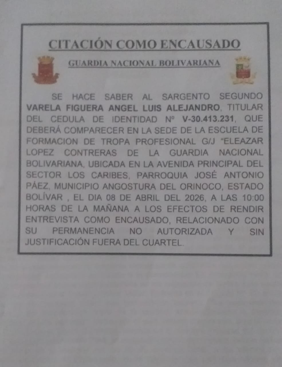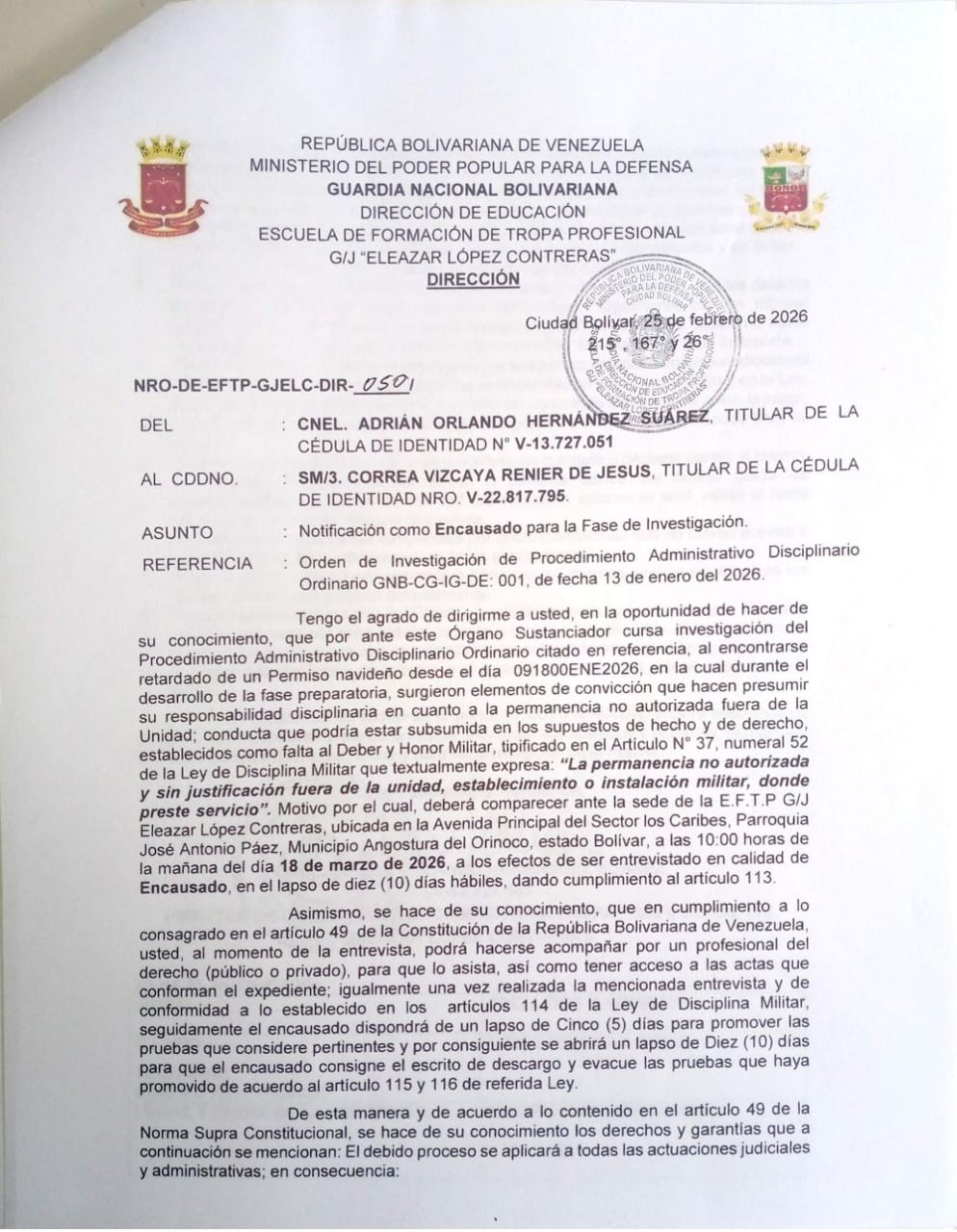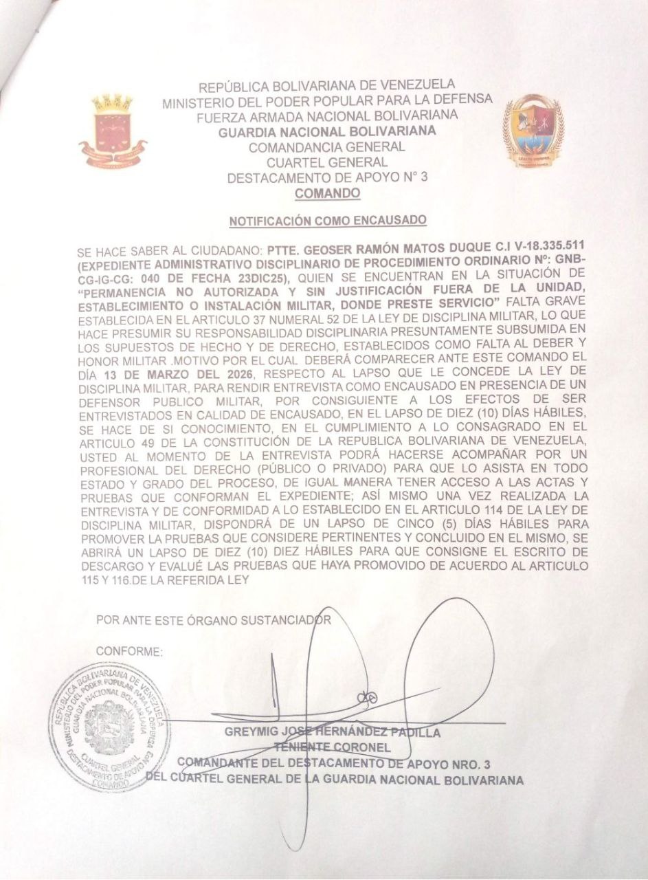 Guardia Nacional Bolivariana Notificaciones sargento segundo martinez linares wilker jose SARGENTO SEGUNDO ANGEL LUIS ALEJANDRO VARELA FIGUERA sargento segundo wilker josé martÍnez linares primer teniente geoser ramón matos duque notificación sargento mayor de tercera correa vizcaya renier de jesus notificaciòn notificación notificación SARGENTO SEGUNDO ISMARY DEL VALLE MARTÍNEZ AVILES PRIMER TENIENTE ÁNGEL ABRAHAN MIGUENS MORALES SARGENTO SEGUNDO JOSMAN OSWALDO LEÓN BASTO NOTIFICACIÓN sargento primero gavidia parra endry jose sargento segundo montiel palomino hendry jose notificacion sargento primero thenn escalona daniela alexandra NOTIFICACIÓN SARGENTO MAYOR DE SEGUNDA GOMEZ PEREZ JONATHA ALEJANDRO SARGENTO MAYOR DE SEGUNDA JAIMEZ GONZALEZ EDISON CAPITAN RINCON MORILLO RAMON ANTONIO NOTIFICACIÓN NOTIFICACIÓN CAPITAN LUIS JAVIER ROJAS DAVID SARGENTO PRIMERO JOSÉ GREGORIO PATIÑO ALCALÁ NOTIFICACIÓN NOTIFICACIÓN SARGENTO MAYOR DE TERCERA TRIBIÑO SUAREZ JESUS ANGEL PRIMER TENIENTE OSCAR ALFREDO GIL SOLIS PRIMER TENIENTE JHOSEF EMANUEL GUTIÈRREZ MÈNDOZA PRIMER TENIENTE RUBEN ALONSO GÒMEZ PIÑEROS TENIENTE HÈCTOR LUIS MUÑOZ MENDOZA NOTIFICACIÓN NOTIFICACIÓN SARGENTO SEGUNDO ENDERSON JOSÉ VARGAS LUCENA TENIENTE RICHARD JOSÉ TIRADO PÉREZ TENIENTE JHEILY VANESSA CONTRERAS TROMPETERO NOTIFICACIÓN NOTIFICACIÓN PRIMER TENIENTE HEBER JUNIOR GIANITTI ESCALONA SARGENTO PRIMERO NEIBIS CHAVEZ CHOURIO SARGENTO SEGUNDO ANDRÉS ELOY BENTA GUTIÉRREZ PRIMER TENIENTE HEBER JUNIOR GIANITTI ESCALONA NOTIFICACIÓN NOTIFICACIÓN SARGENTO SEGUNDO JAMPIER ADONIS FLORES TORRES SARGENTO SEGUNDO LUIS ANTONIO HOYO BERBESI NOTIFICACIÓN CAPITÁN NELSI ROSSI LAMBOS SARGENTO MAYOR DE TERCERA KENDRIS JOSÉ VILLALOBOS FARIAS SARGENTO SEGUNDO DAVID SALOMÓN LÓPEZ VILLEGAS SARGENTO SEGUNDO RONAL JOSÉ LEAL GAMEZ SARGENTO SEGUNDO ABRAHAN JOSE SALAZAR FARIAS SARGENTO PRIMERO ANTHONY JOSÉ ALCALA DIAZ SARGENTO PRIMERO FELIANYER JOSÉ GARCIA MORILLO PRIMER TENIENTE MANUEL ALEJANDRO ESCALONA SILVA SARGENTO MAYOR DE PRIMERA NELSON ANTONIO HERNANDEZ CASADIEGO SARGENTO SEGUNDO KELVIN DANIEL HERRERA MONTOYA SARGENTO SEGUNDO JESÚS DAVID GARCÍA BARROSO SARGENTO SEGUNDO JEYKER MIGUEL MOLLEJAS GÓMEZ SARGENTO PRIMERO YEMBER SILVA ALBARRACIN SARGENTO SEGUNDO JULIANY PAOLA PALMAR PALMAR NOTIFICACIÓN NOTIFICACIÓN SARGENTO SEGUNDO CESAR ANTONIO MOTABAN CHANCHAMIRE SARGENTO SEGUNDO ÁNGEL ELOY AZOCAR MEZA SARGENTO PRIMERO ADAN ADOLFO LASCANO ÁLVARES SARGENTO SEGUNDO JOSÉ RAMÓN PÉREZ NATERA NOTIFICACIÓN NOTIFICACIÓN SARGENTO SEGUNDO JOSÉ RAMÓN PÉREZ NATERA TENIENTE JOSÉ MANUEL OSORIO RAMONES CAPITÁN JESÚS EDGARDO ROJAS GUTIERREZ NOTIFICACIÓN NOTIFICACIÓN CAPITÁN ROMER JESÚS RAMÍREZ CAMPOS NOTIFICACIÓN PRIMER TENIENTE DOMINGUEZ GRILLET JOSE MIGUEL SARGENTO PRIMERO MEDINA GONZALEZ ALEXANDER ANTONIO CORONEL CARLOS ALDRIN PERALTA PÉREZ SARGENTO MAYOR DE TERCERA WILLIAN JOSUE MANTILLA ARIAS SARGENTO PRIMERO HUMBERTO JOSÉ ROMERO PARRA TENIENTE HÉCTOR LUIS MUÑOZ MENDOZA PRIMER TENIENTE EDGAR JOSÉ GONZÁLEZ GONZÁLEZ PRIMER TENIENTE RUBEN ALONSO GOMEZ PIÑERO SARGENTO SEGUNDO ROSSTHY ANTONIO PÉREZ LAMEDA PRIMER TENIENTE JOSÉ RICARDO FLORES BOJACA PRIMER TENIENTE LORWING ALBERTO CASTELLANOS QUIVA Capitan Rodríguez Piña Will Alinson Primer Teniente María Nazareth Cuamo Ospino Teniente Delgado Piña Alejandra del Valle